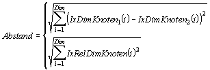 Der direkte Abstand zwischen zwei Knoten läßt sich einmal aus der absoluten Position beider Knoten oder aus der relativen Position der Knoten zueinander berechnen: