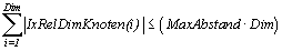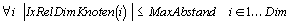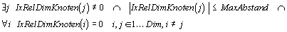 Ausgehend von einem Knoten kann der Index jedes anderen Knotens in der Anordnung relativ angegeben werden. Dies kann mehrdimensional, IxRelDimKnoten, oder eindimensional, IxRelKnoten, erfolgen. Eine Umrechnung zwischen beiden Angaben ist mit Gleichung 4-6 möglich. Bei der mehrdimensionalen Angabe enthält jedes Element von IxRelDimKnoten den rechtwinkligen Abstand in der jeweiligen Dimension. Eine Angabe von IxRelDimKnoten=[3,4,2] bedeutet, daß die Knoten in Dimension 1 einen Abstand von 3, in Dimension 2 einen Abstand von 4 und in Dimension 3 einen Abstand von 2 haben. Wenn der Abstand von einem Knoten zum anderen gerichtet betrachtet wird, nehmen die Angaben auch negative Werte an.