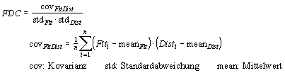 Eine Möglichkeit der Berechnung des FDC-Koeffizienten besteht darin, eine Anzahl von Individuen zu nehmen, von diesen den Zielfunktionswert (hier als Fit bezeichnet) zu berechnen und zusammen mit der Distanz Dist daraus nach Gleichung 5-1 den FDC-Koeffizienten zu bilden: