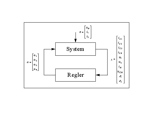 Hauptaufgabe des zu entwerfenden Reglers ist, die Ausgangsspannungen u1 und u2 konstant zu halten. In mehreren Arbeiten (u.a. [BEL95]) wurde gezeigt, daß durch eine Zustandsrückführung solche Systeme behandelt werden können.