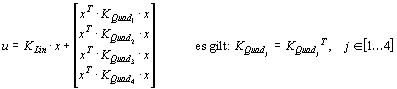 Für die quadratische Rückkopplung der Zustände ergibt sich folgende Reglergleichung: