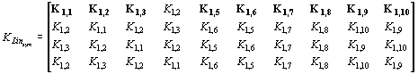 Zur Betonung ist jedes erste Auftreten eines Parameters fett hervorgehoben, ein wiederholtes Auftreten wird durch eine kursive Formatierung verdeutlicht. Nur die Parameter der ersten Zeile mit Ausnahme des 4. Parameters treten in der symmetrischen linearen Zustandsrückführung auf. Durch die Symmetrien verringerte sich die Anzahl der unabhängigen Parameter der Zustandsrückführung von 40 auf 9 Parameter.