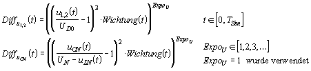 Die Spannungen u1, u2 und uCN werden über den Simulationszeitraum und für jedes Szenario unterschiedlich stark gewichtet. Dadurch werden bestimmte Bereiche eines jeden Szenarios deutlich stärker bewertet, andere Zeitbereiche dafür weniger.