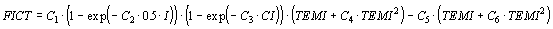 P0 ist die CO2-Gaswechselrate unter Standardbedingungen. Die Größe FICT wird mittels einer parametrischen Gleichung ermittelt: