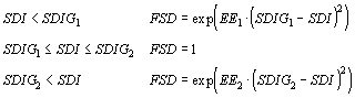 Die Größe FSD wird durch eine von 3 Gleichungen in Abhängigkeit des Wertes des Dampfdrucksättigungsdefizits innen, SDI, bestimmt: