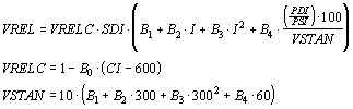 V0 ist die Transpirationsrate unter Standardbedingungen. Die Größe VREL wird durch 3 parametrische Gleichungen berechnet: